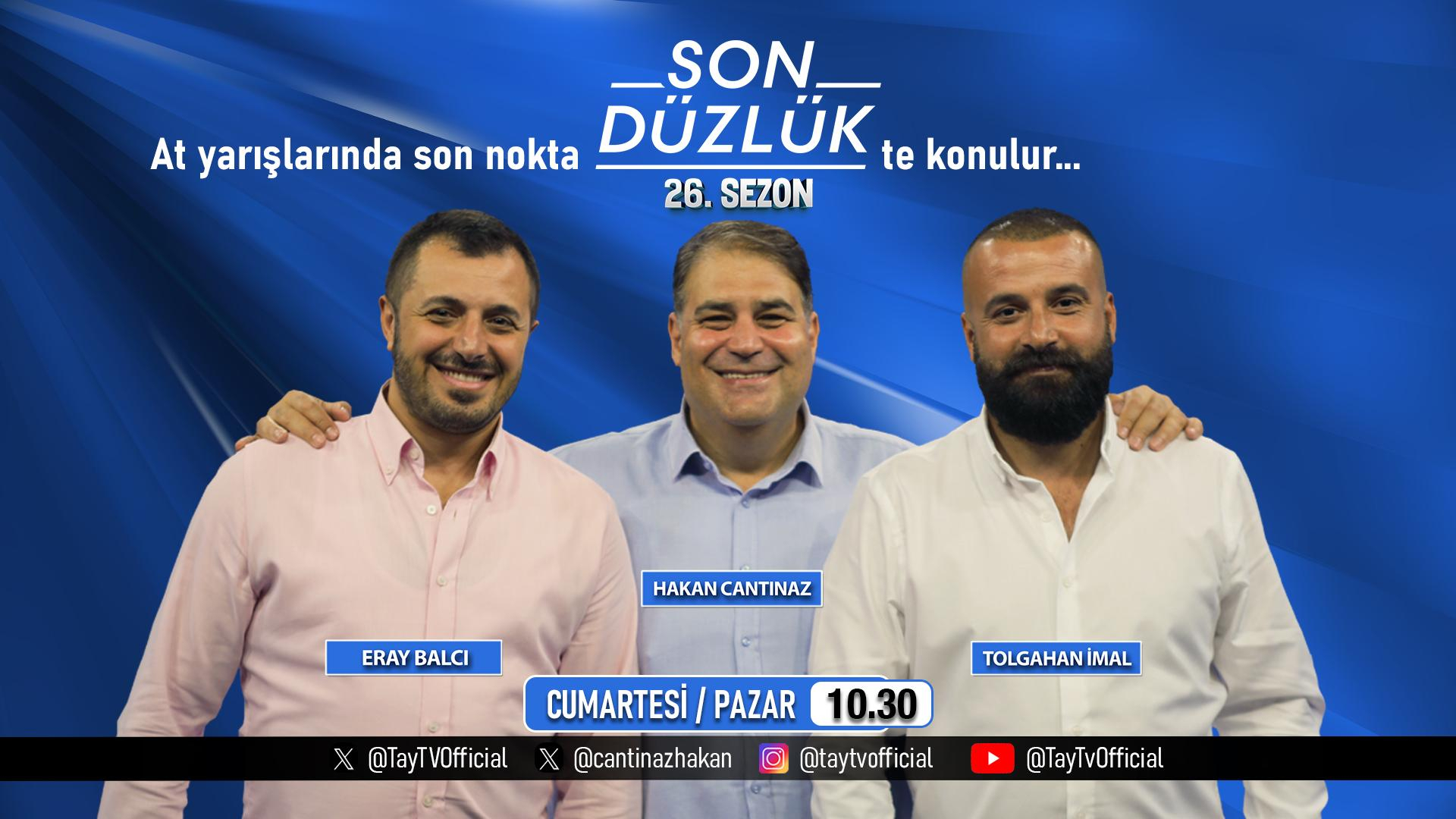 Tay TV Genel Yayın Yönetmeni Hakan Cantınaz moderatörlüğünde ünlü at yarışı yorumcuları Eray Balcı ve Tolgahan İmal’in analiz ve değerlendirmelerinin yer aldığı Son Düzlük, bu sezon da cumartesi ve pazar sabahlarının vazgeçilmezi olmaya devam edecek. Son Düzlük, 9 Ağustos 2025 Cumartesi günü 10.30-13.30 saatleri arasında 26. sezonuyla Tay TV ekranlarında yerini alacak.